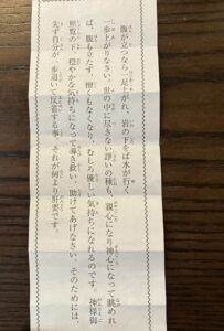 これは今年元旦に引いたおみくじです。結果は小吉だったのだけど、それは置いといて、このおみくじの裏面に書いてあった言葉にガツーンと来てしまったのです。